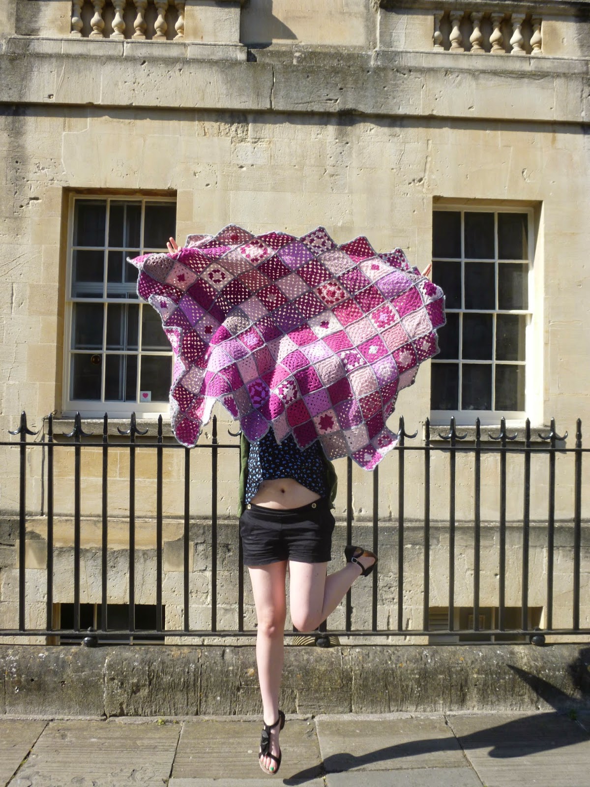 And ta da! Here I am many months later at last proudly brandishing a completed crochet blanket. Now there's a first.